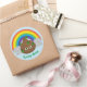 Cute sticker featuring 'Lucky Poop' with rainbow and a scattering of four leaf clovers.