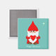 Cute magic gnome with heart on teal background Magnet. Text can be personalised.