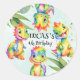 Cute Magical Rainbow Dinosaur Happy Birthday Party Classic Round Sticker