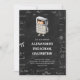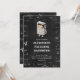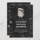 Adorable preschool graduation invitation with a math theme. The illustration has a little kid wearing a calculator costume over a blackboard background with math equations and formulas. Illustrated and designed by Patricia Alvarez.