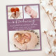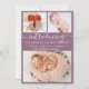 Baby Girl Mauve Birth Announcement 3 Photo Collage Cards. Elegant birth announcement featuring 3 of your favourite baby photos on front, with a pretty hand lettered text „introducing” in a swirly calligraphy script with swash-tails font on mauve purple colour background. Add your baby's name on the front and birth stats. At the back side one vertical baby photo on white dots light mauve background. You can easily personalise it.