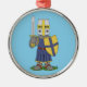 A cute cartoon knight clad in mail and great helm holds his sword high, ready to defend his castle.