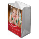 Cute medium personalised white and red Merry Christmas gift bags with customisable photo and text - you can add your photo, family name and year.