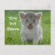 Humourous badass cats with attitude postcards and gifts. Slogan "tiny but fierce" kitten postcard.