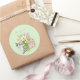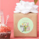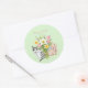 Cute and adorable sticker with cat, bunny and a spring bouquet. Green background and soft colours.