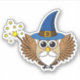 An illustration of a cute cartoon merlin the wizard owl with his blue hat and magic wand. This kawaii old bird with white beard design is a gift idea for bird lovers, magical movie lovers and stars lovers.