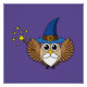 An illustration of a cute cartoon merlin the wizard owl with his blue hat and magic wand. This kawaii old bird with white beard design is a gift idea for bird lovers, magical movie lovers and stars lovers.