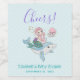 Event bottle labels with an adorable illustration. Designed with a pretty mermaid girl riding a happy dolphin. A little jellyfish friend accompanies them. Decorated with little splatters of faux gold glitter. Light blue background with faded pink polka dots.