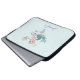 Laptop sleeve with an adorable illustration. Designed with a pretty mermaid girl riding a happy dolphin. A little jellyfish friend accompanies them. Decorated with little splatters of faux gold glitter. Light blue background with faded pink polka dots.