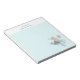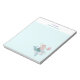 A notepad with an adorable illustration. Designed with a pretty mermaid girl riding a happy dolphin. A little jellyfish friend accompanies them. Decorated with little splatters of faux gold glitter. Light blue background.