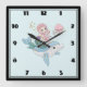 Cute Mermaid Riding a Dolphin Under the Sea Square Wall Clock