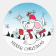 Cute Merry Christmas Mouse Snowflakes Classic Round Sticker