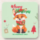 Cute merry Christmas red fox Santa Scarf holiday Coaster