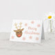 Cute Merry Christmas Reindeer Pink Gold Card