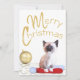 Cute Merry Christmas Siamese Kitten Gold Ornament Holiday Card
