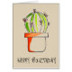 A cute hand drawn black pen illustration of a Echinopsis Hedgehog succulent cactus with happy birthday greeting. Famous in the South American desert, this on trend cacti design of cactus love art by artist Sacha Grossel is minimalist, trendy and modern. Pops of neon green and orange colour.