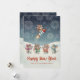 Celebrate the joy of the season with this adorable watercolor Happy New Year card featuring cheerful mice in colourful knitted hats and scarves watching fireworks in a snowy winter landscape. The front shows a playful mouse soaring into the night sky on a rocket while the others cheer below, capturing the fun and excitement of New Year celebrations. Personalise the text with your own “Happy New Year” message, “With love,” and family name for a heartfelt touch. The back features the same festive scene with the mouse on the rocket and sparkling fireworks for a charming finish. The boho watercolor style adds cosy winter warmth and whimsical woodland charm, perfect for families, kids, and anyone who loves cute animals and cheerful holiday art. Part of a collection with matching party supplies.