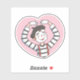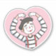 A pink heart with a cute doodle of a mime in a striped tshirt and red suspenders who is forming a heart with his hands and arms over his head. For mime love!
