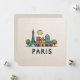 A vibrant illustration depicting the skyline of paris, featuring iconic buildings and trees. the design captures the essence of the city with a playful and artistic touch.