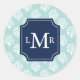 Cute Mint Summer Pattern and Blue Monogram Classic Round Sticker