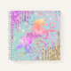 Make back to school fun with this Cute personalised Notebook. It is designed with elegant girly iridescent glitter drips in unicorn rainbow aqua turquoise purple.