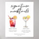 This cute signature mocktails menu poster features 2 drink drawings and their ingredients for your wedding bar or pool party. A Shirley Temple and non-alcoholic Lemon Drop for a trendy bar menu with your customized event text.