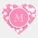 Cute Mod Pink Flowers Pattern, Your Initial Heart Sticker