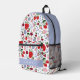 This cute and modern girl's backpack features a white background with berries & cherry pattern in pink, red and pale blue. Personalise it for your needs. You can find matching products at my store.