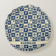 Cute Modern Blue Chequered Icons Pattern Boy's Fun Round Cushion