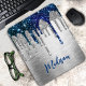 Cute modern Blue Glitter Drips monogram Mouse Pad