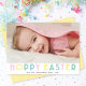 This cute yet modern Easter photo card features a single horizontal photo with pastel colored typography. The backer is a yellow & white diagonal stripe to coordinate with the type color. All of the colors in this design are customizable, including greeting colors and backer.