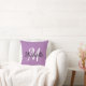 Throw pillow with a purple background and white custom monogram first initial and first name.