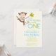 Start you first birthday party off right with our adorable little boy monkey kids birthday party invitations. Perfect invitation for you 1st birthday party celebration! Our sweet little monkey invitations features a cute little monkey swinging on a tree branch and is set on a stylish tan stripe background. Our monkey boy birthday party invitation features an unique little monkey with a party hat & balloons background. Visit our shop for matching thank you note cards, birthday stickers, thank you stickers and postage stamps. © Petit Tatti
