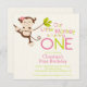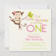 Start you first birthday party off right with our adorable little girl monkey kids birthday party invitations. Perfect invitation for you 1st birthday party celebration! Our sweet little monkey invitations features a cute little monkey swinging on a tree branch and is set on a stylish tan stripe background. Our monkey girl birthday party invitation features an unique little monkey with a party hat & balloons background. Visit our shop for matching thank you note cards, birthday stickers, thank you stickers and postage stamps. © Petit Tatti
