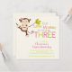 Start your third birthday party off right with our adorable little girl monkey kids birthday party invitations. Perfect invitation for your 3rd birthday party celebration! Our sweet little monkey invitations features a cute little monkey swinging on a tree branch and is set on a stylish tan stripe background. Our monkey girl birthday party invitation features an unique little monkey with a party hat & balloons background. Visit our shop for matching thank you note cards, birthday stickers, thank you stickers and postage stamps. © Petit Tatti