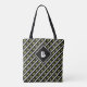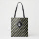 Cute Modern Monogram Initial Pattern Black Green Tote Bag