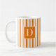 Cute Modern Orange and White Striped Initial Coffee Mug