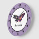 Cute Modern Photography Butterfly Add Name Large Clock