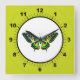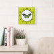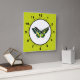 Cute Modern Photography Butterfly Green Square Wall Clock