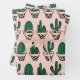 Cute Modern Pink Green Potted Cactus Pattern Wrapping Paper Sheet
