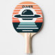 Personalised ping pong paddle featuring a cute modern and minimalist UFO design at sunset.