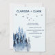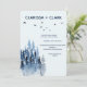 Cute modern watercolor mountain landscape destination wedding invitation.