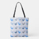 Modern whale illustrations in shades of blue on pastel blue stylish tote.