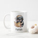 An adorable mole wearing glasses and happily reading a book, illustrated in a soft and cozy style made for mugs. Perfect for book lovers, readers, teachers, and anyone who enjoys cute animal designs with their morning coffee or tea.