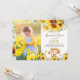 Cute 1st birthday invitation featuring adorable baby monkey, beautiful watercolor sunflowers and a pair of buzzing bees! Personalise the invite with your party details and your child's photo.