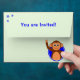 This cute 2nd birthday party envelope has a smiling monkey holding a blue 2nd birthday balloon on the back, and a matching single balloon on the front. Inside there is a polka dot pattern of blue spots, and the top flap is decorated with three blue stars. There is editable text "You are invited!" also in blue, or you can change this to suit. The envelope is coloured pale green, but you can choose an alternative custom colour if you prefer.
