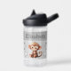 This water bottle features a cute monkey with stars in the colours grey and white.