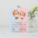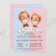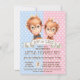 Monkey gender reveal invitations with adorable watercolor baby boy and baby girl orangutan monkeys on a pink and blue dot background. These monkey gender reveal invitations are easily customised for your event by simply adding your details. You can move or remove the bow tie.