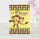 Funny cute monkey hanging from tree branch birthday card. Original artwork by Envisager Studio.