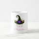 Cute Girly Girl's Halloween Kitty or Kitten Black Hat Witch Coffee Cup for an October Birthday Present. This Cat Lover Coffee or Tea Mug can be customised to include your monogrammed name script signature. Please contact the designer for matching items.